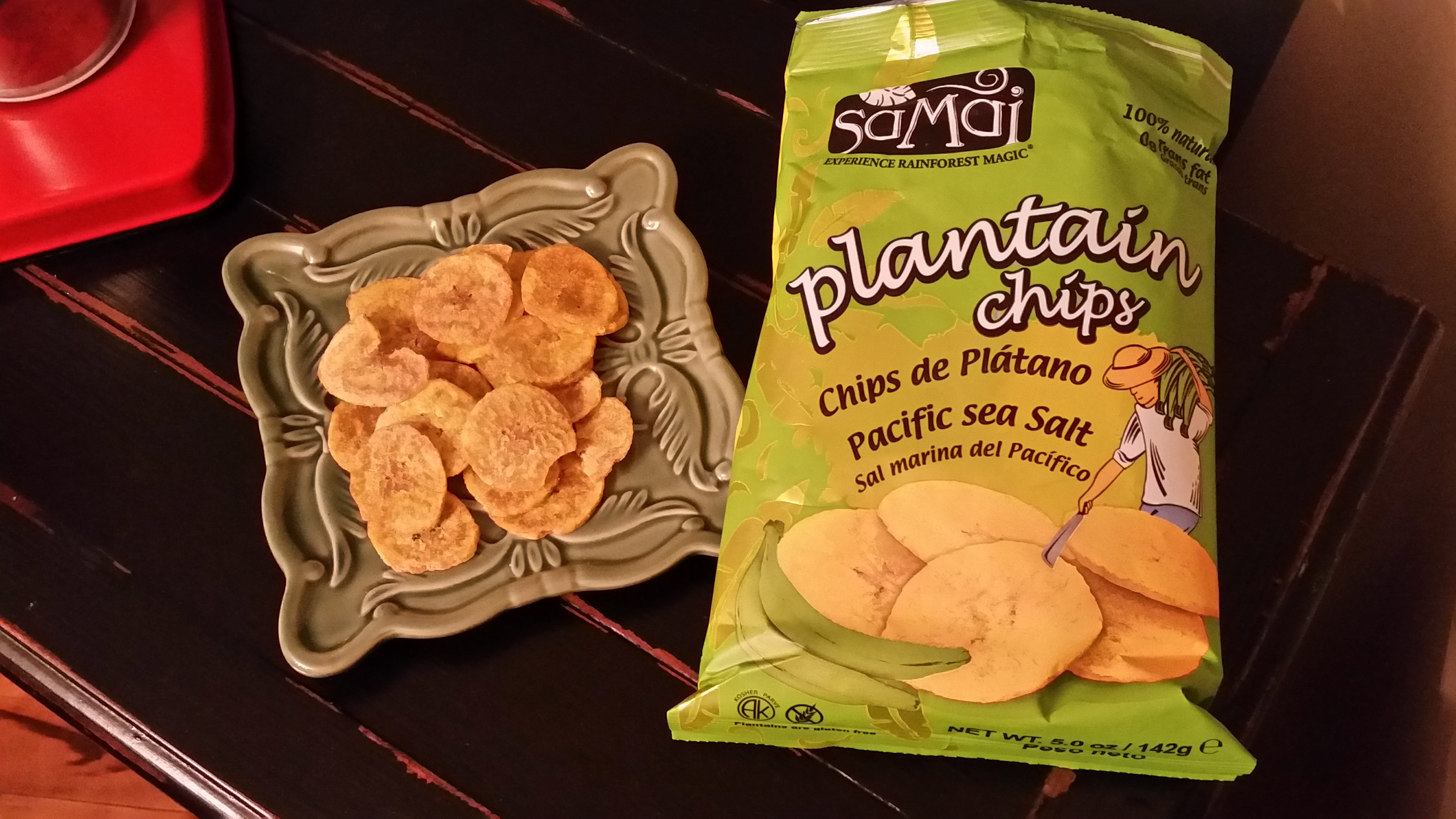 - Plantain Chips.  DIY or homemade.  Green plantains are not SCD legal, but ripe plantains are SCD legal.  I use the green plantains always because that is what we prefer, but they do sell ripe plantain chips — they make for a very sweet tasting chip.  1 green plantain, 1 tsp extra virgin coconut oil, melted, ½ tsp sea salt or more to your liking.  Toss the plantain slices with the melted coconut oil, lay single layer on parchment lined baking sheet, and sprinkle with the salt. Bake 350F for 20-25 minutes.  Flip midway to ensure crisping.  Others use a cast iron skillet and fry the chips instead of baking them in an oven.  Try both ways and find your preference!
