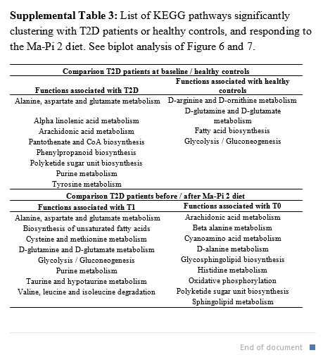 This is a major difference! Ma-Pi 2, but NOT the CTR, counteracted increase of possible pro-inflammatory microbiome species, showing the potential to reverse pro-inflammatory dysbioses in T2D, and possibly explaining the greater efficacy in improving the metabolic control. You already know: The foods you eat pre-selects your microbiome comunity! Think of it as your microbial passengers seeing a lot of sugar from the boatload of starch and sugar you eat… those microbial passengers are looking for the missing antioxidants (from berries and EVOO for example), the missing phytonutrients and phytochemicals (from vegetables, fruits…), and etc. Feed them what they need to flousish beneficially and you’ll see weight, waistline, and increased energy results!